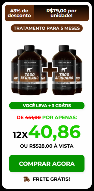Combinados, os componentes de TACO AFRICANO trabalham sinergicamente para promover uma série de benefícios para a saúde masculina, incluindo aumento da libido, melhora da função erétil, aumento da energia e resistência física, e suporte à saúde hormonal e imunológica.